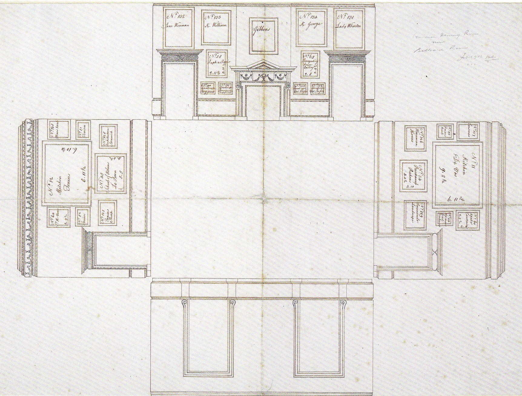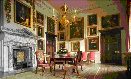 A drawing for the Common Parlour next to a photograph of the hanging for the exhibition shows how close they have been able to come. Above the fireplace, which is in the upper center of the drawing, hangs a portrait by (the German-born, Dutch-trained numero uno of English portraiture) Godfrey Kneller (1646-1723) of the (Dutch-born and trained) sculptor and carver Grinling Gibbons (1648-1721), who created the surrounding garland of gilded wood around the portrait, the motif of which was imitated in the marble relief decorations of the fireplace. How contextual can you get? The Russian empress may have bought the painting fair and square, but in St. Petersburg its context cannot be more different. “The Hermitage collection of 16th- to 19th-century English painting includes over 450 items and is of particular importance, bearing in mind the rarity of works by English artists in European museums” (from the museum website). One of 450 examples versus a true one of a kind. Of course not every display in Houghton is as stunningly in its place as the Kneller, but that great prize illustrates the spirit in which Walpole built and furnished his house, its appurtenances and its art. It is saddening to think that after November the sheer rightness of this hanging will be undone, and the spell it casts over visitors will never again in our time do its magic.