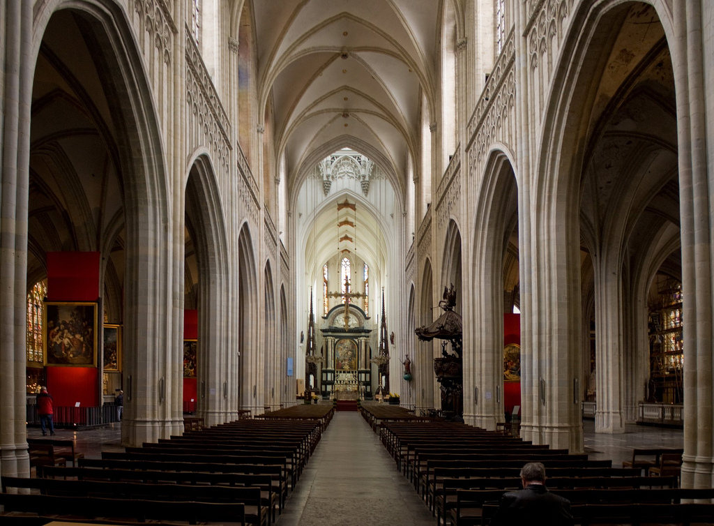 Rather, then, than hanging the foremost altarpieces on the nave piers which were once their location, within an exclusive enclosure known as a “tuin,” a garden, they have had to retreat to the side aisles, where they nonetheless exercise their magic.
