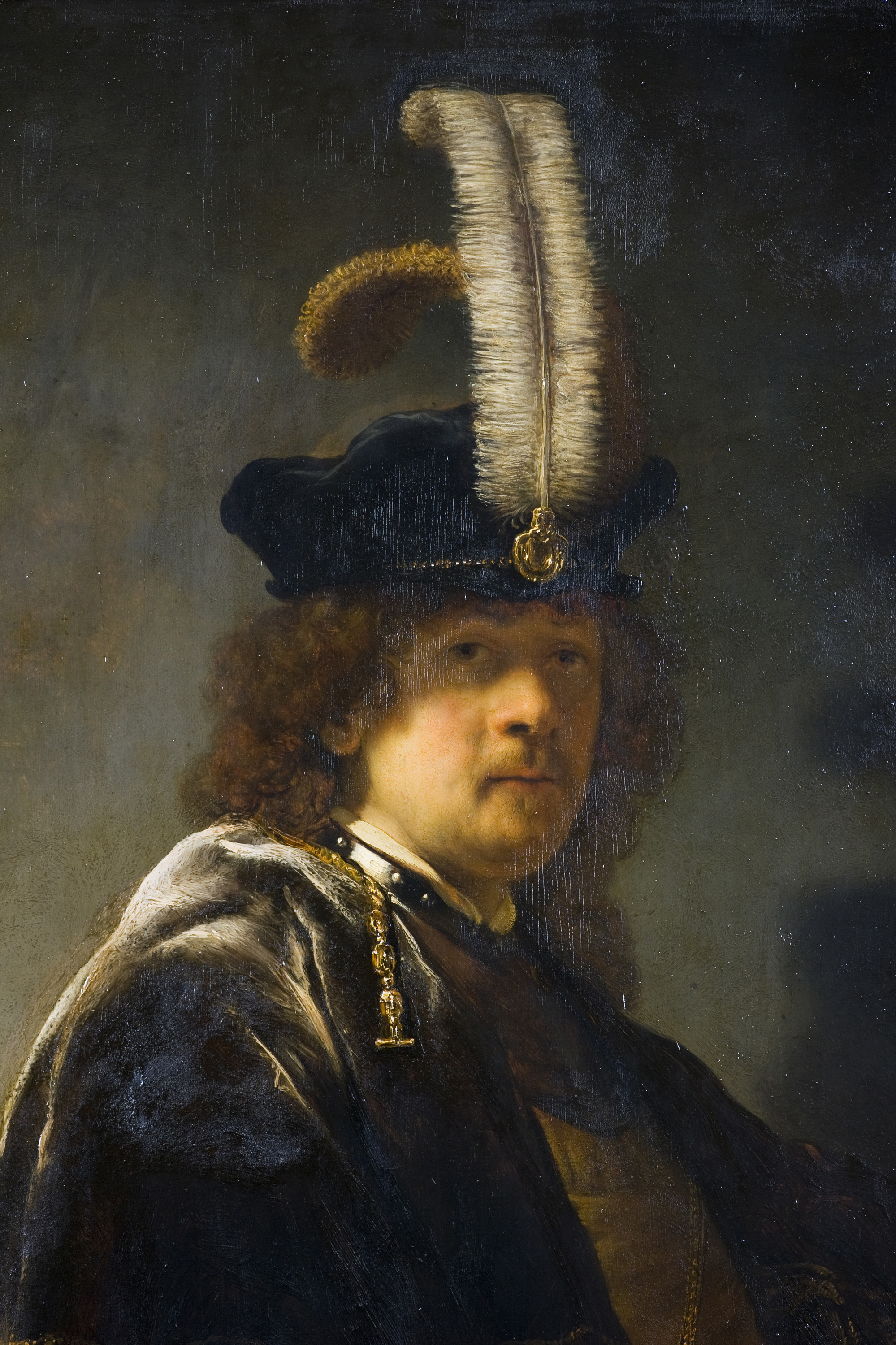 Last year an exhibition was held in Buckland Abbey, a National Trust holding in the Devon countryside, around a painting by and of Rembrandt van Rijn. The painting shows Rembrandt at his most dandyish, with a big plume in his hat and a magnificent velvet cloak. He is wearing a gorget of the kind he sported on several earlier self-portraits, no later ones. The occasion for the exhibition was phrased by the Abbey thus: